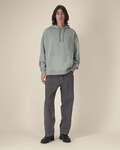 Doppellagige Kapuze aus Oberstoff Nackenband mit Fischgrätmuster Halbmond aus Oberstoff im Nacken Flache gleichfarbige Kordel Eingesetzte Ärmel 2x1-Rippstrick an Ärmelbündchen und unterem Saum Durchgehend zweifach abgesteppt Verblasste Nähte für einen gewaschenen Look Garment dyed (stückgefärbt): Jedes Teil ist einzigartig, leichte Farbabweichungen sind möglich Druckempfehlungen beachten